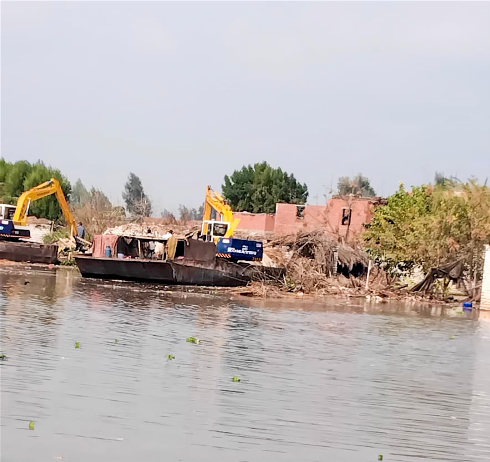 وقد تم يوم ١٠ نوفمبر ٢٠٢٥ تنفيذ إزالات لعدد (٤٥) تعدٍ على فرع رشيد، شملت مباني مخالفة وأعمال ردم داخل المجرى المائي للنهر، وذلك تنفيذًا للإجراءات القانونية الصادرة في حينها تجاه هذه المخالفات، وبالتنسيق مع الجهات المعنية لضمان تنفيذ الإزالات بشكل منظم وآمن .