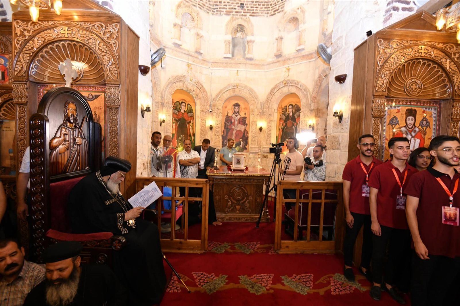 ورحب نيافة الأنبا يؤانس بقداسة البابا قائلاً: “نرحب بقداستكم في هذا الدير المبارك، وأنا أعلم مدى محبتكم الخاصة للقديس البابا أثناسيوس الرسولي. وقد تمت مؤخرًا أعمال ترميم الكنيسة الأثرية بما يليق بتاريخها ومكانتها.”