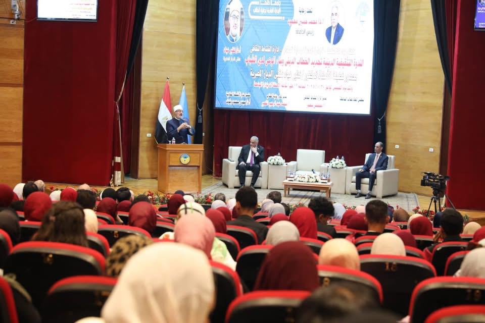 جاء ذلك خلال كلمة فضيلته في ندوة «تجديد الخطاب الديني وبناء الوعي لدى الشباب» التي نظمتها جامعة طنطا، بحضور الأستاذ الدكتور محمد حسين محمود رئيس الجامعة، والأستاذ الدكتور محمود سليم نائب رئيس الجامعة لشئون خدمة المجتمع وتنمية البيئة، والأستاذ الدكتور حاتم أمين نائب رئيس الجامعة للدراسات العليا والبحوث، والسادة عمداء ووكلاء الكليات وأعضاء هيئة التدريس والعاملين، إلى جانب جمع كبير من طلاب الجامعة الذين شاركوا في اللقاء في أجواء من الحفاوة والتفاعل الإيجابي مع ما طرحه فضيلته من رؤى فكرية وعلمية مستنيرة حول قضايا التجديد وبناء الوعي الرشيد.