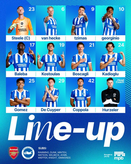وعلى الجانب الآخر أعلن فابيان هورزيلار مدرب برايتون عن تشكيل فريقه الرسمي، ويريد الانتصار خارج ملعبه للتواجد في الدور المقبل.