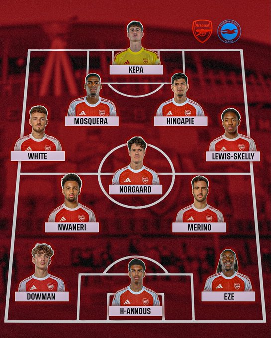 التشكيل الرسمي لمباراة أرسنال وبرايتون في كأس رابطة المحترفين الإنجليزية