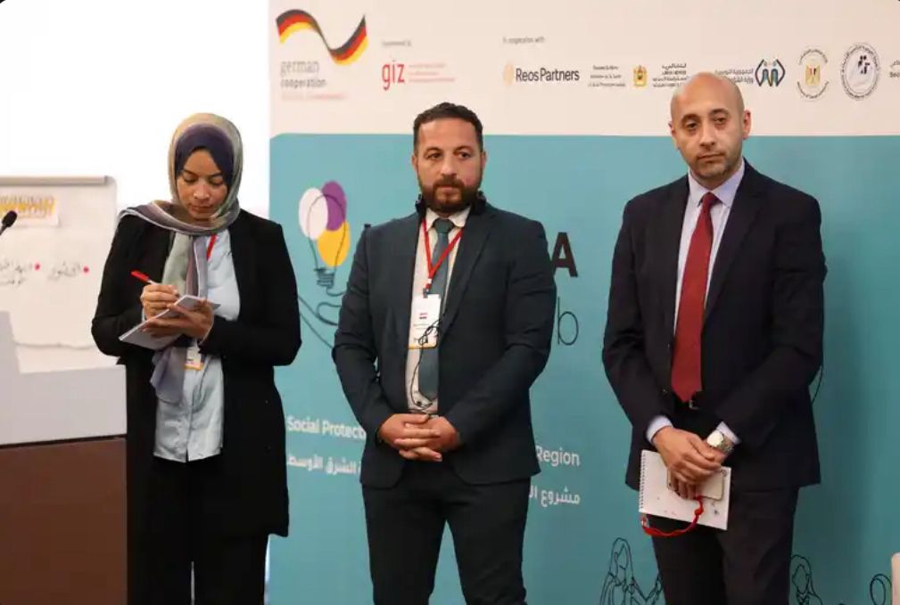 مثل وفد التضامن الاجتماعى رأفت شفيق مساعد وزيرة التضامن الاجتماعي للحماية الاجتماعية ودعم شبكات الامان الاجتماعى والتمكين الاقتصادى، والمستشار كريم قلاوي نائب رئيس مجلس الدولة والمستشار القانوني لوزيرة التضامن الاجتماعي، و حسام الزمر المدير المالي لبرنامج تكافل وكرامة، ومدحت عبد الرشيد استشاري التمكين الاقتصادي والاجتماعي للبرنامج، حيث تم استعراض التجربة المصرية في منظومة الحماية الاجتماعية، والأطر القانونية المنظمة في ضوء قانون الضمان الاجتماعي، وقانون التأمينات الاجتماعية والمعاشات والبرامج الخاصة باستهداف العمالة غير المنتظمة وأصحاب الحرف اليدوية والتراثية.