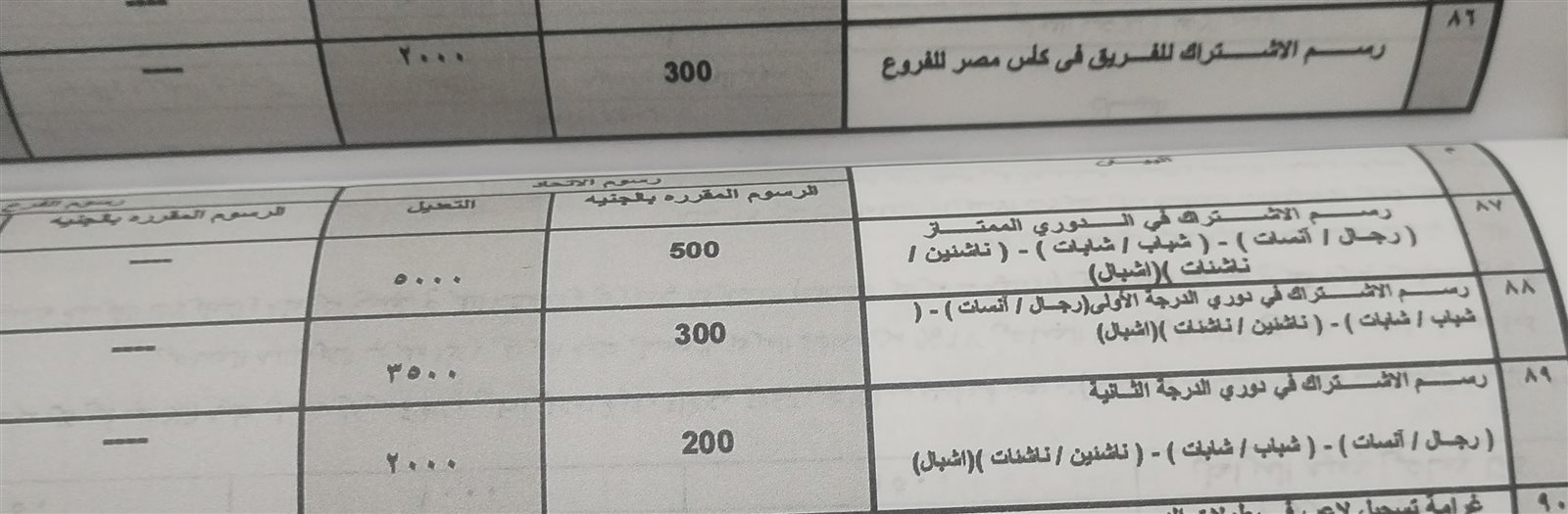 رفض زيادة رسوم الاشتراك في الدوري الممتاز لجميع المراحل (رجال وآنسات – شباب وشابات – ناشئون وناشئات – أشبال) من 500 جنيه إلى 5000 جنيه.