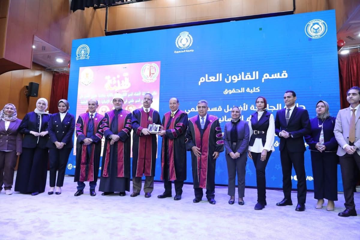 وفي لفتة تقدير وعرفان أهدى الأستاذ الدكتور شريف خاطر، رئيس جامعة المنصورة، درع الجامعة لفضيلة مفتي الجمهورية؛ تقديرًا لجهوده العلمية والدعوية.