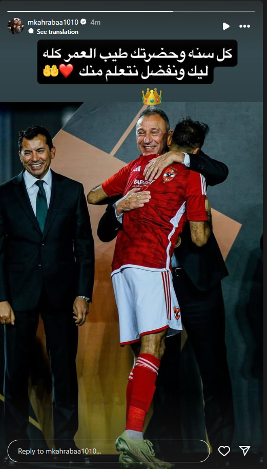 تحيا مصر، وكتب كهربا عبر حسابه الرسمي” انستجرام”: كل سنه وحضرتك طيب العمر كله ليك ونفضل نتعلم منك”.