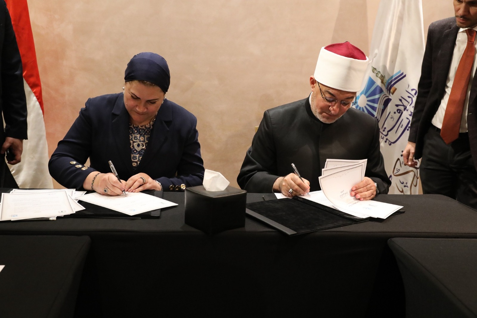 وقعت الدكتورة سحر السنباطي رئيسة المجلس القومي للطفولة والأمومة، وفضيلة أ.د. نظير محمد عياد، مفتي الجمهورية، اليوم الإثنين، بروتوكول تعاون مشترك يهدف إلى تنفيذ عدد من الأنشطة والبرامج الهادفة إلى تعزيز الوعي المجتمعي بحماية الأطفال من كافة أشكال العنف والإساءة، وتصحيح المفاهيم المغلوطة. بحضور السيدة ميراي نسيم عضو مجلس إدارة المجلس القومي للطفولة والأمومة.