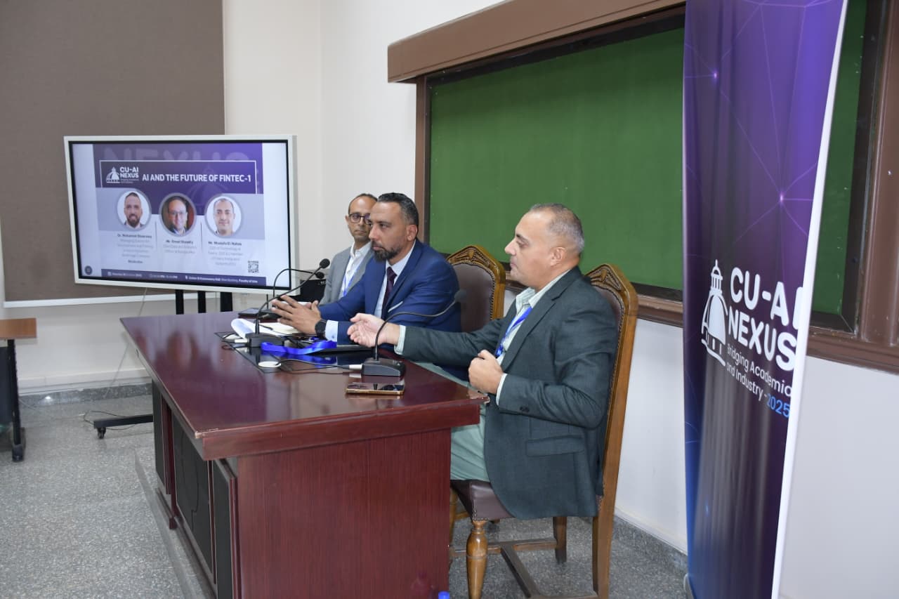 في إطار فعاليات مؤتمر جامعة القاهرة  الدولي للذكاء الاصطناعي ، شهدت قاعة سهير القلماوي بكلية الآداب، جلسة نقاشية بعنوان “الذكاء الاصطناعي ومستقبل التكنولوجيا المالية”، شارك بها نخبة من الخبراء والمتخصصين في القطاع المالي، وهم: د. محمد شعراوي العضو المنتدب للتطوير والتدريب بشركة أسطول لتداول الأوراق المالية، وأ.عماد شوقي الرئيس التنفيذي للبيانات والتحليلات في بنك مصر، وأ.مصطفى النحاس الرئيس التنفيذي للتكنولوجيا في شركة فوري، والرئيس التنفيذي ورئيس مجلس إدارة FIS.