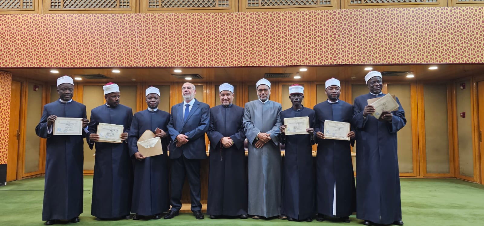 من جهتهم، عبّر المشاركون عن بالغ تقديرهم لفضيلة الإمام الأكبر على رعايته الكريمة لهذا البرنامج، مثمنين ما حصلوا عليه من علوم شرعية رصينة وتدريبات عملية أسهمت في تطوير قدراتهم الدعوية وتعزيز مهاراتهم التواصلية، مؤكدين التزامهم بنقل رسالة الأزهر القائمة على الوسطية والاعتدال والحوار البنّاء إلى أوطانهم، وأن يكونوا سفراء أمناء لقيم الأزهر ومبادئه.