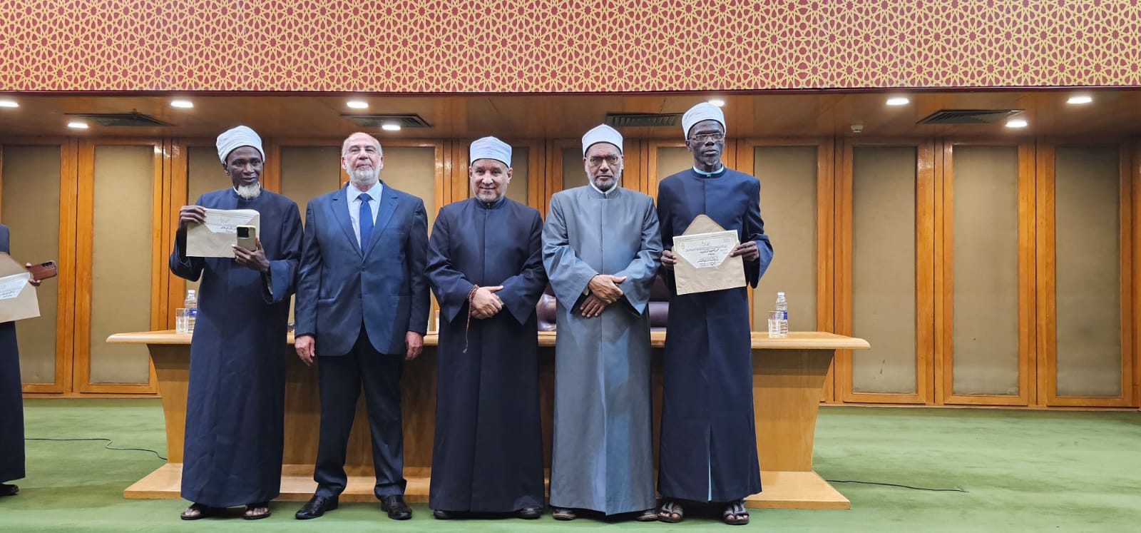 وفي ختام الحفل، سلّم فضيلة الدكتور حسن الصغير الشهادات للمشاركين، موجّهًا لهم التحية على التزامهم وجهودهم خلال فترة التدريب، ومتمنيًا لهم دوام التوفيق والسداد في أداء رسالتهم الدعوية وترسيخ الصورة المشرقة للإسلام وقيمه السمحة في مجتمعاتهم