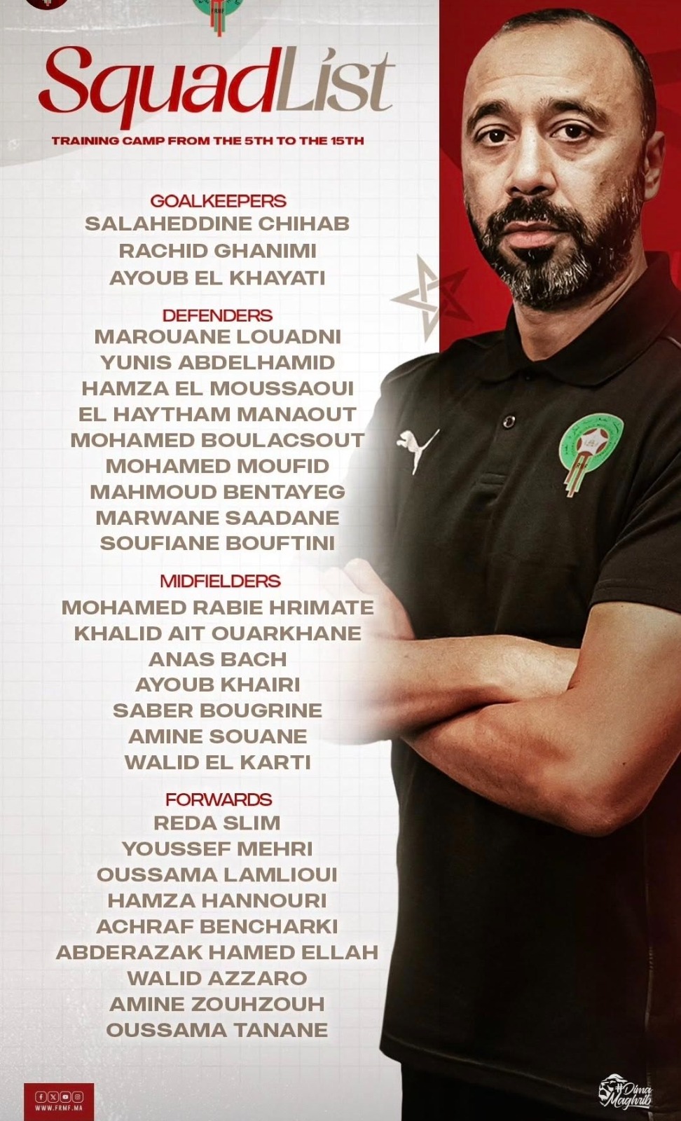 وشهدت قائمة المنتخب المغربي استدعاء عدد من الأسماء البارزة، من بينها الثلاثي المحترف في الدوري المصري: أشرف بن شرقي لاعب الأهلي، ووليد الكرتي نجم بيراميدز، ومحمود بنتايج لاعب الزمالك، كما تم استدعاء رضا سليم، لاعب الأهلي المعار حالياً إلى صفوف الجيش الملكي المغربي.
