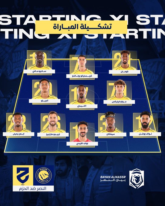 تشكيل النصر الرسمي ضد الحزم في دوري روشن السعودي