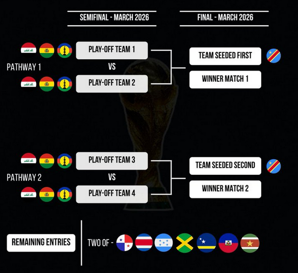 ويحصل الفائزان من المباراتين النهائيتين على بطاقتي التأهل الرسميتين إلى كأس العالم 2026، في ختام معركة كروية مصيرية تُحدد آخر الواصلين إلى أكبر محفل كروي عالمي.