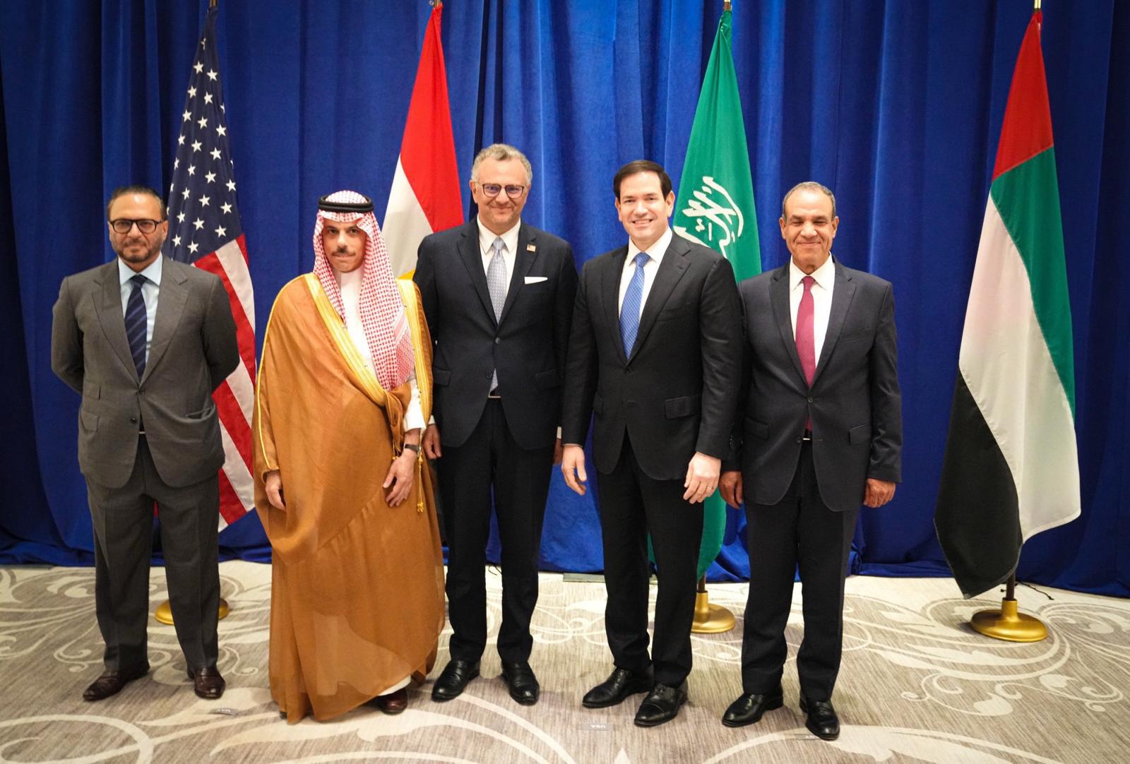 وشارك الاجتماع وزير الخارجية الأمريكي ماركو روبيو، الأمير فيصل بن فرحان وزير خارجية المملكة العربية السعودية، ومسعد بولس كبير مستشاري الرئيس الأمريكي للشئون العربية والشرق الأوسط والمستشار رفيع المستوى للشئون الإفريقية