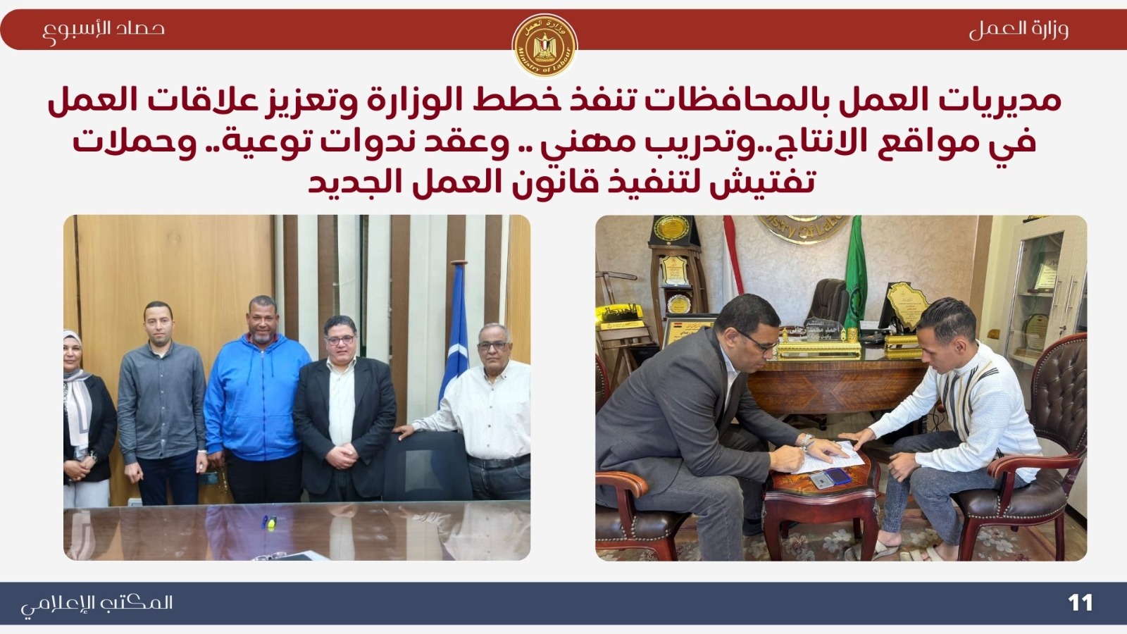 وفي الختام تؤكد وزارة العمل استمرارها في تنفيذ استراتيجية الدولة لبناء سوق عمل مستقر، وتعزيز الحوار الاجتماعي، وحماية حقوق العمال، وتوفير فرص العمل اللائق، بما يحقق التنمية المستدامة ورؤية مصر المستقبلية.