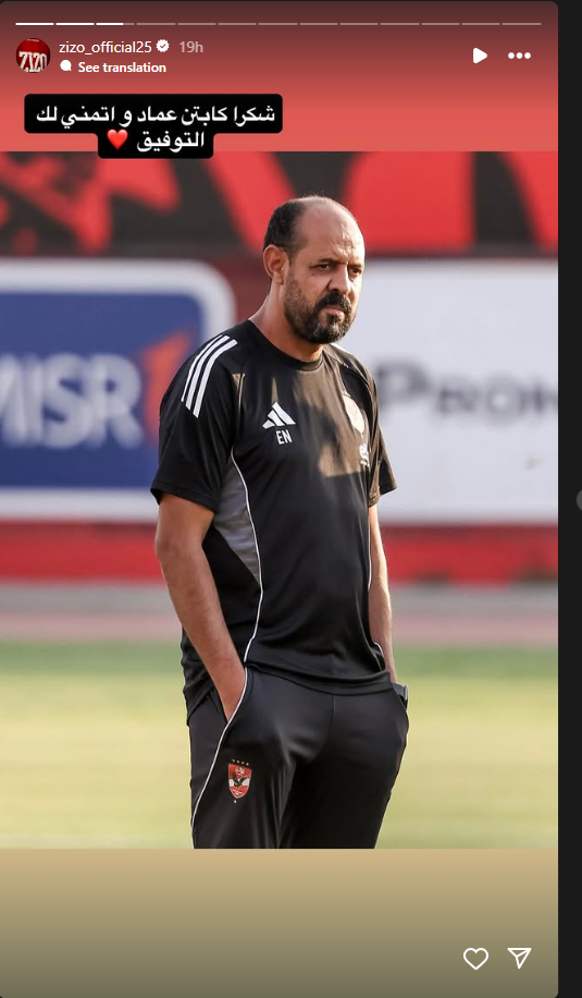تحيا مصر، وكتب أحمد سيد زيزو عبر حسابه الرسمي”انستجرام”: شكراً كابتن عماد وأتمني لك التوفيق”.