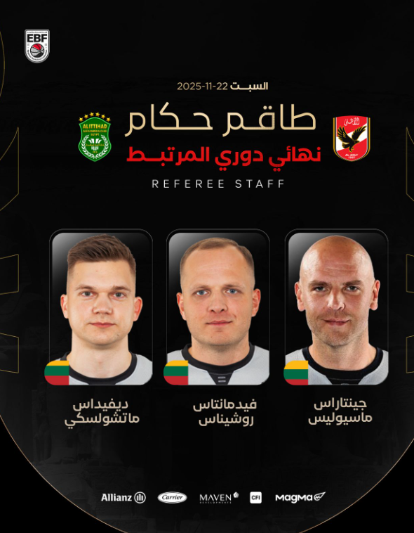 طاقم تحكيم ليتواني يقود نهائي دوري المرتبط لكرة السلة بين الأهلي والاتحاد السكندري