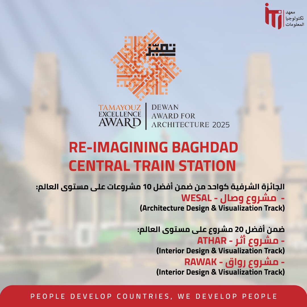 وتناولت نسخة المسابقة هذا العام إعادة تخيّل محطة قطار بغداد المركزية باعتبارها معلمًا تاريخيًا يحتاج إلى التحول إلى مساحة نابضة بالحياة تربط الماضي بالحاضر والمستقبل. ومن بين 110 مشروعًا من 28 دولة، كانت رؤية طلاب معهد تكنولوجيا المعلومات من أبرز المشروعات عالميًا.