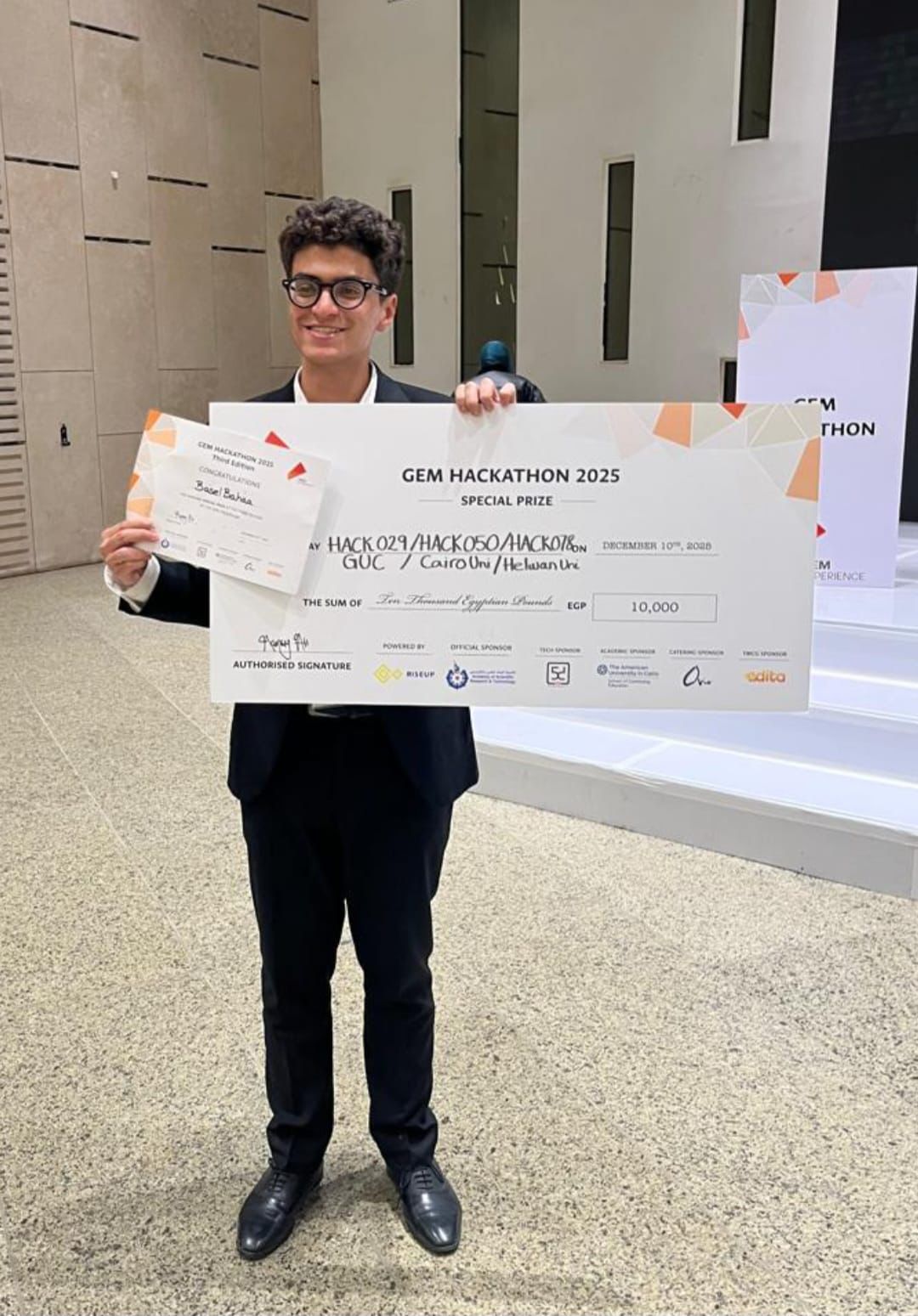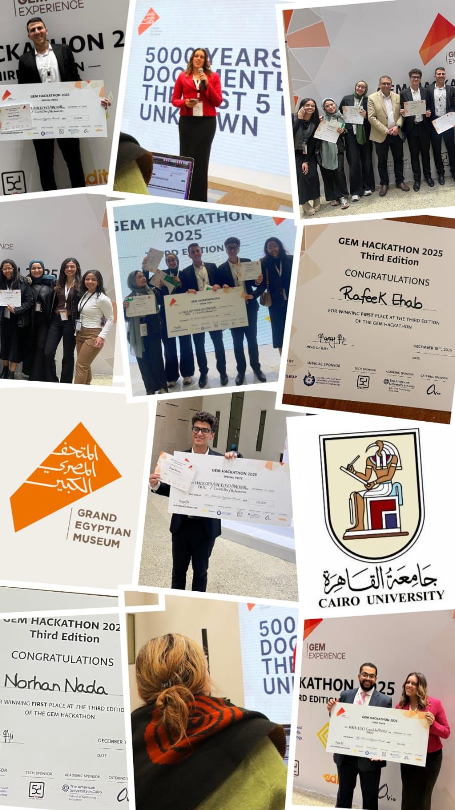 في إنجاز جديد يعكس ريادة جامعة القاهرة في مجالات الابتكار والتحول الرقمي، فاز فريقان من كلية الهندسة – جامعة القاهرة بالمركزين الأول والرابع في فعالية الهاكاثون التي أُقيمت داخل المتحف المصري الكبير، بمشاركة فرق طلابية متميزة من مختلف الجامعات المصرية.