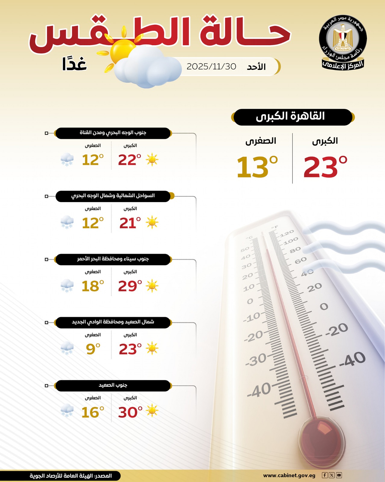 درجة الحرارة الساعة 12 ظهرا على القاهرةالكبرى 20 درجة