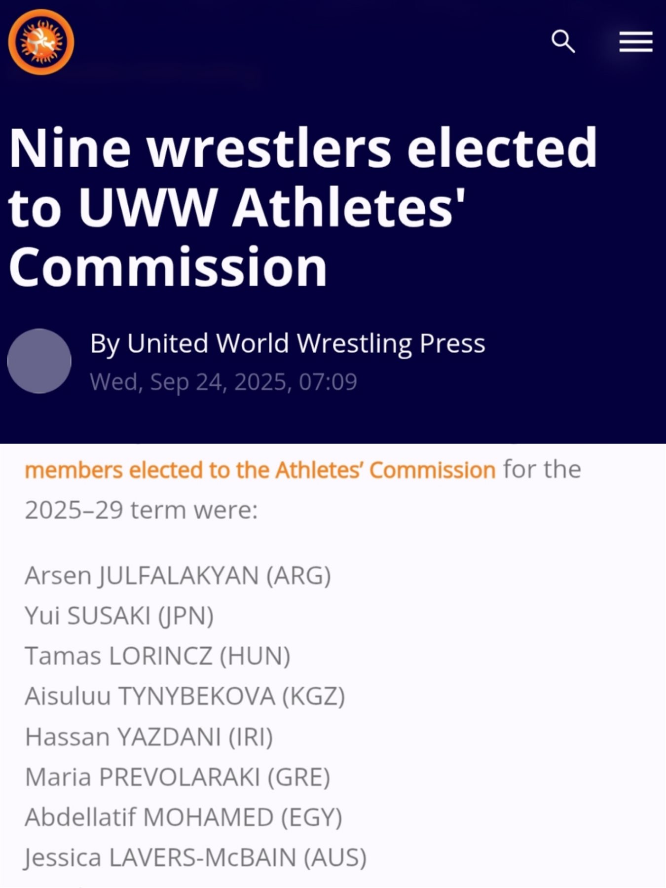 وبذلك أصبحت جميع القارات ممثلة في اللجنة الجديدة، مع نجاح أربع مصارعات في الفوز بعضوية اللجنة.