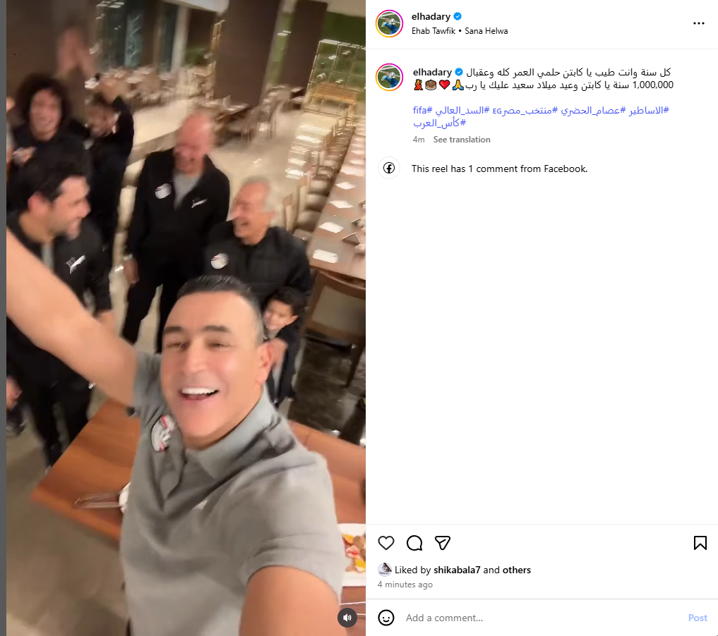تحيا مصر، وكتب حلمي طولان عبر حسابه الرسمي”إنستجرام”: ‏كل سنة وأنت طيب يا كابتن حلمي العمر كله وعقبال 1,000,000 سنة يا كابتن وعيد ميلاد سعيد عليك يا رب”.