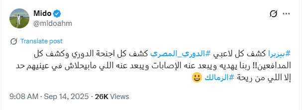 تحيا مصر، وكتب ميدو عبر حسابه الرسمي”فيس بوك”: بيزيرا كشف كل لاعبي الدوري المصري كشف كل اجنحة الدوري، وكشف كل المدافعين ربنا يهديه ويبعد عنه الإصابات ويبعد عنه اللي مابيحلاش في عينيهم حد إلا اللي من ريحة الزمالك”.
