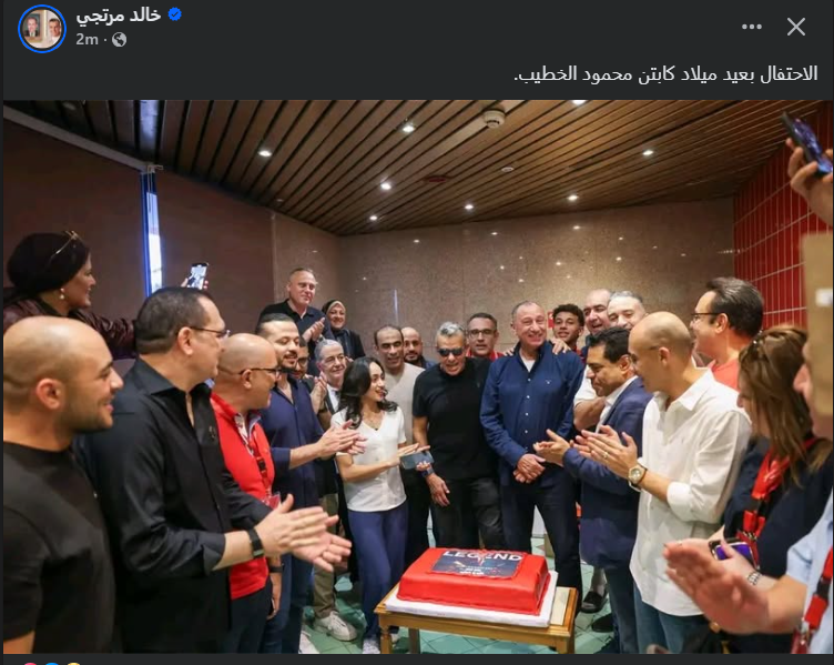 تحيا مصر، ونشر خالد مرتجي المرشح على منصب أمين صندوق النادي الأهلي، صورة الاحتفال بمحمود الخطيب رئيس القلة الحمراء، بمناسبة عيد ميلاده الـ71.