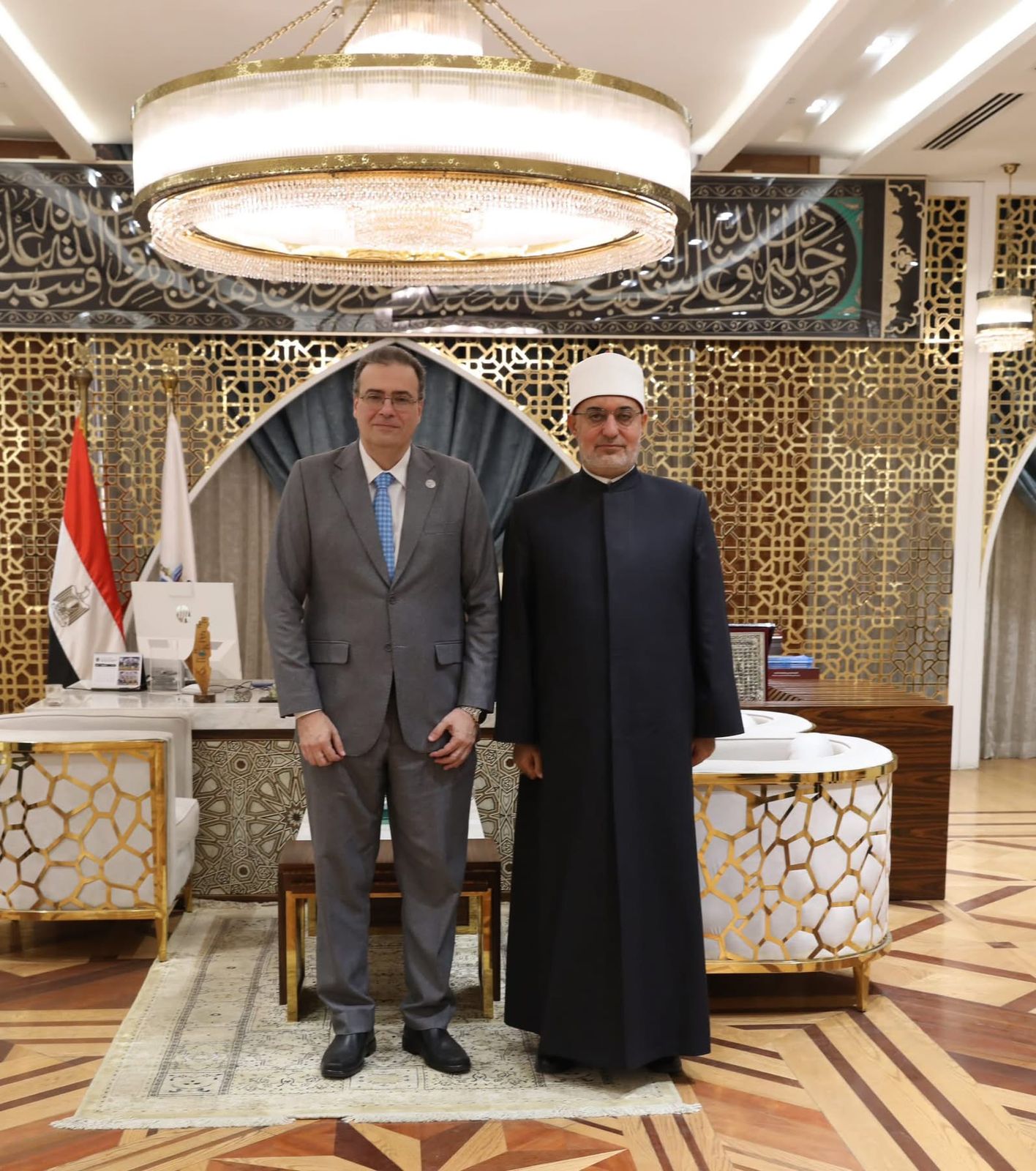 استقبل فضيلة أ.د. نظير محمد عياد، مفتي الجمهورية، رئيس الأمانة العامة لدور وهيئات الإفتاء في العالم، اليوم الخميس، السيد المهندس، حاتم نبيل، رئيس الجهاز المركزي للتنظيم والإدارة، والوفد المرافق له، بمقر دار الإفتاء المصرية.
