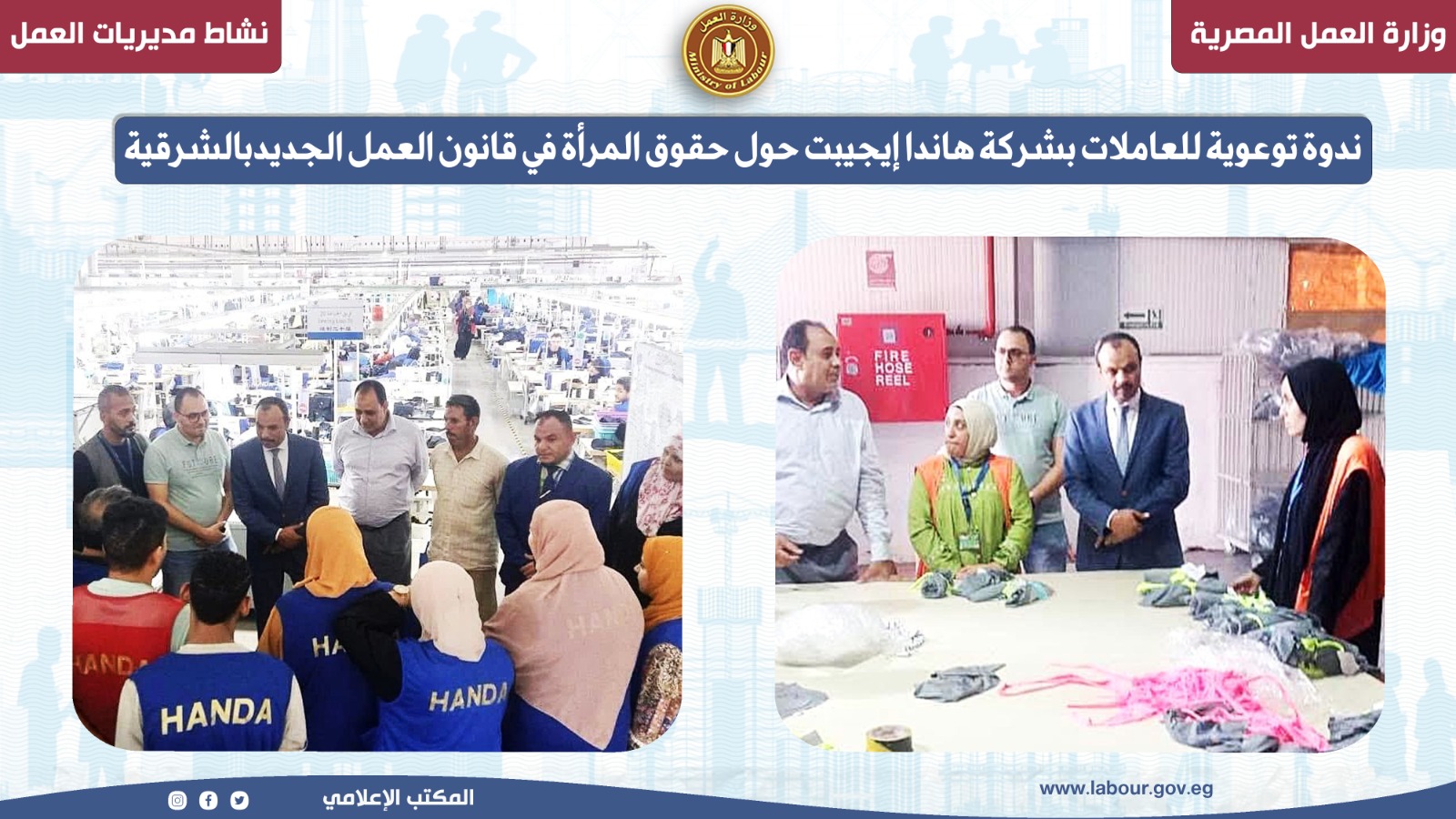 6-ندوة توعوية للعاملات بشركة هاندا إيجيبت حول حقوق المرأة في قانون العمل الجديد بالشرقية