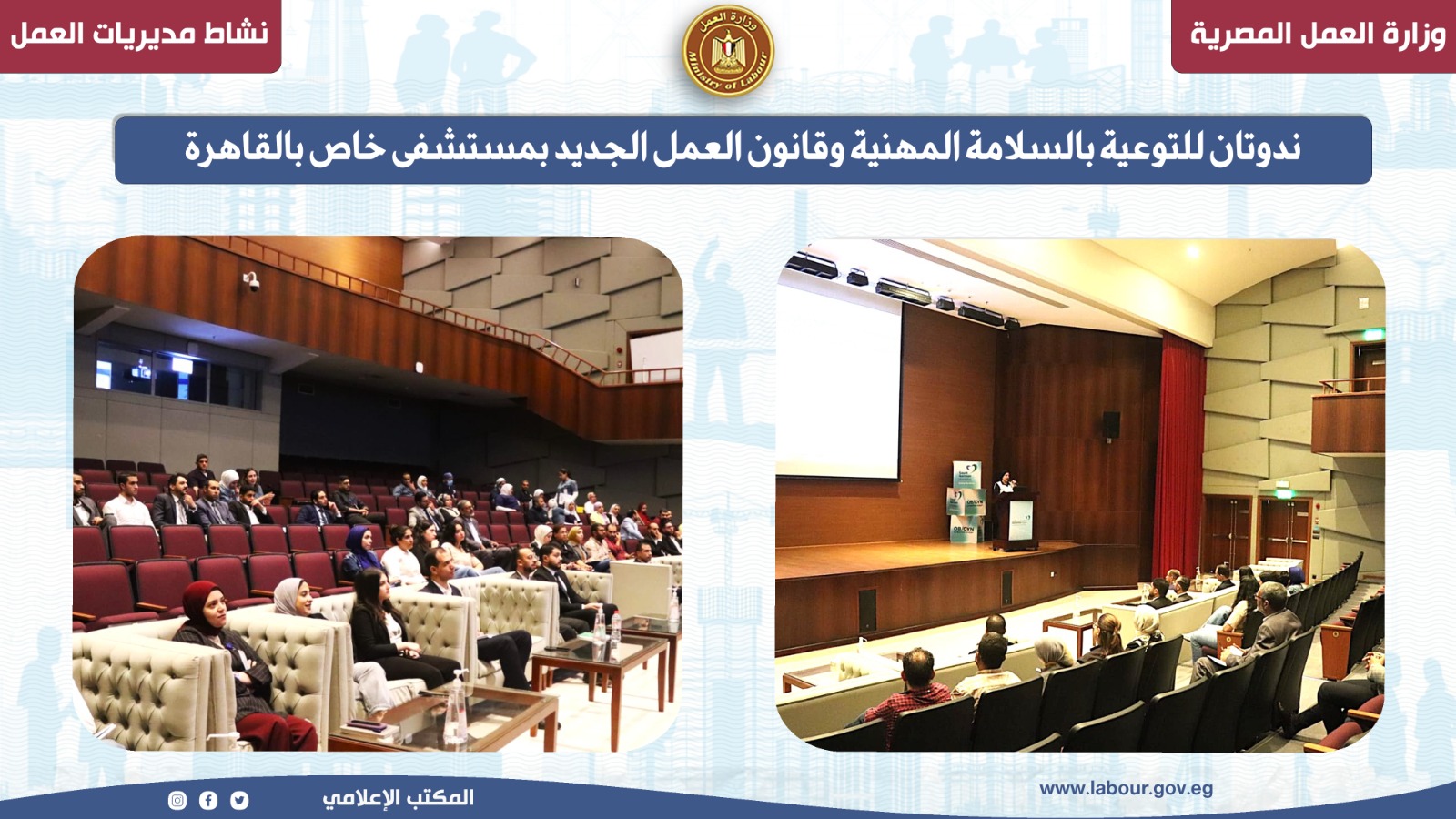 1-ندوات تثقيفية للتوعية بمبادئ السلامة المهنية وقانون العمل الجديد بمستشفى خاص بالقاهرة