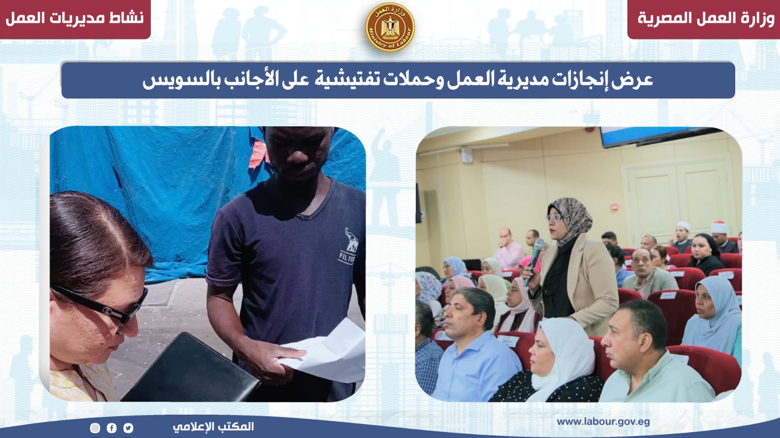 9-عرض إنجازات مديرية العمل.. وحملات تفتيشية على الأجانب بالسويس