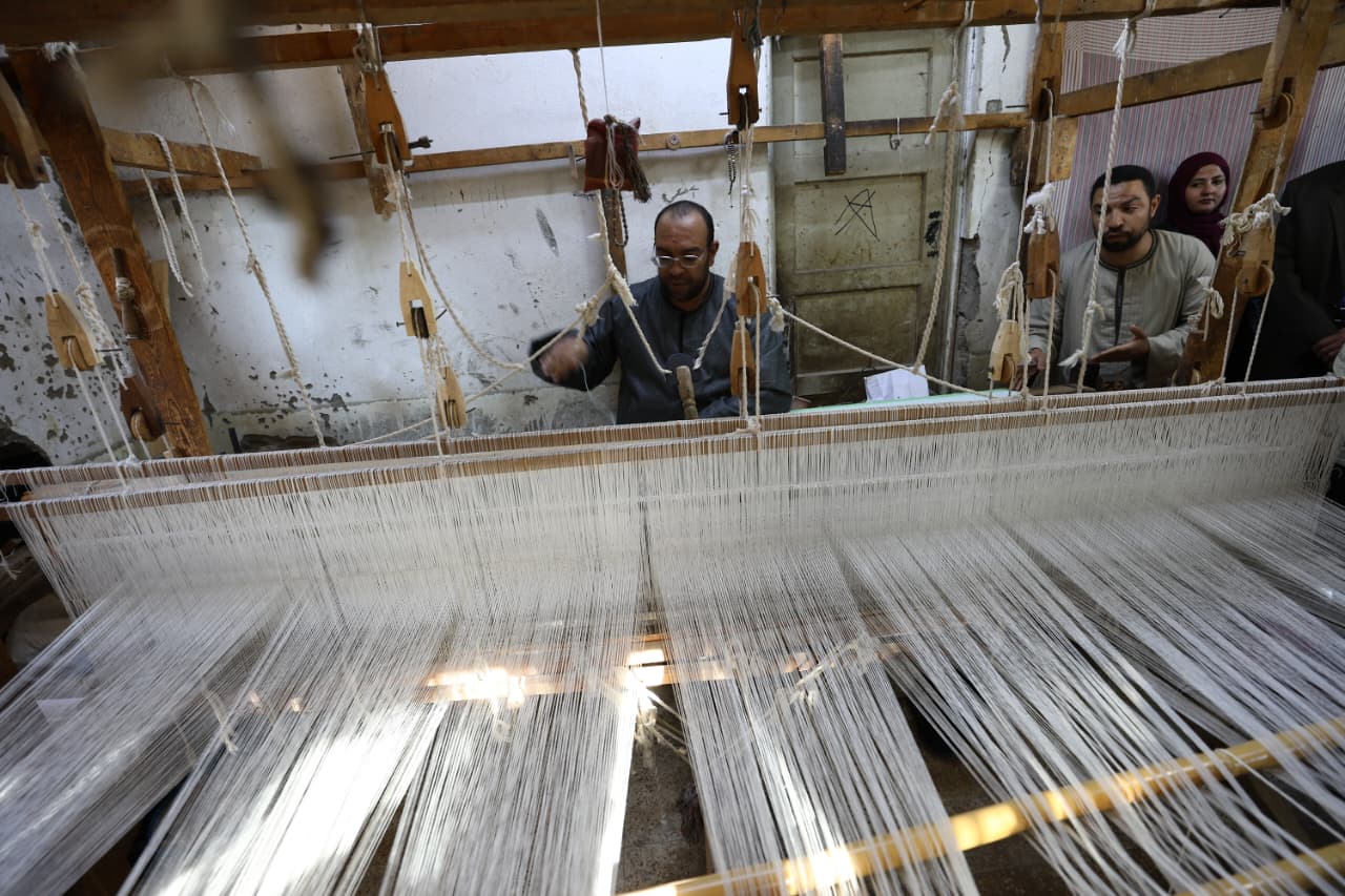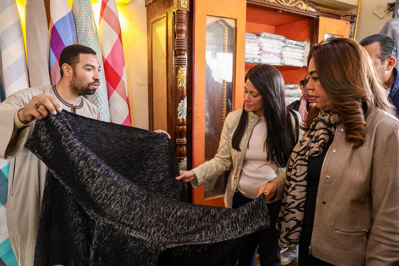 واستمعت الوزيرتان إلى عرض من مسئولي المحافظة حول جهود دعم الحرف التراثية بسوهاج، وحول قرية النساجين التي تُعد أحد المشروعات التنموية الرائدة بالمحافظة، حيث تستهدف الحفاظ على حرفة النسيج اليدوي التراثية، وهي قرية النسيج الأولى بحي الكوثر أُنشئت عام 1991، وتضم 150 بيت نول من طابق واحد، فيما تضم القرية الثانية 122 بيت نول، مضافًا إليها 15 نولًا جديدًا، بما يسهم في زيادة الطاقة الإنتاجية ودعم العاملين بالحرفة.