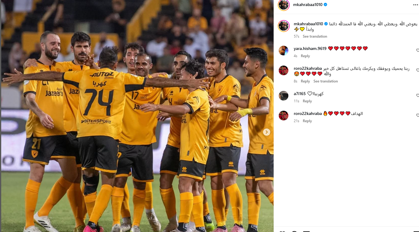 وكتب محمود كهربا عبر حسابه الرسمي”إنستجرام”: يعوض الله، ويعطي الله، ويغني الله فالحمدلله دائماً وأبداً”.