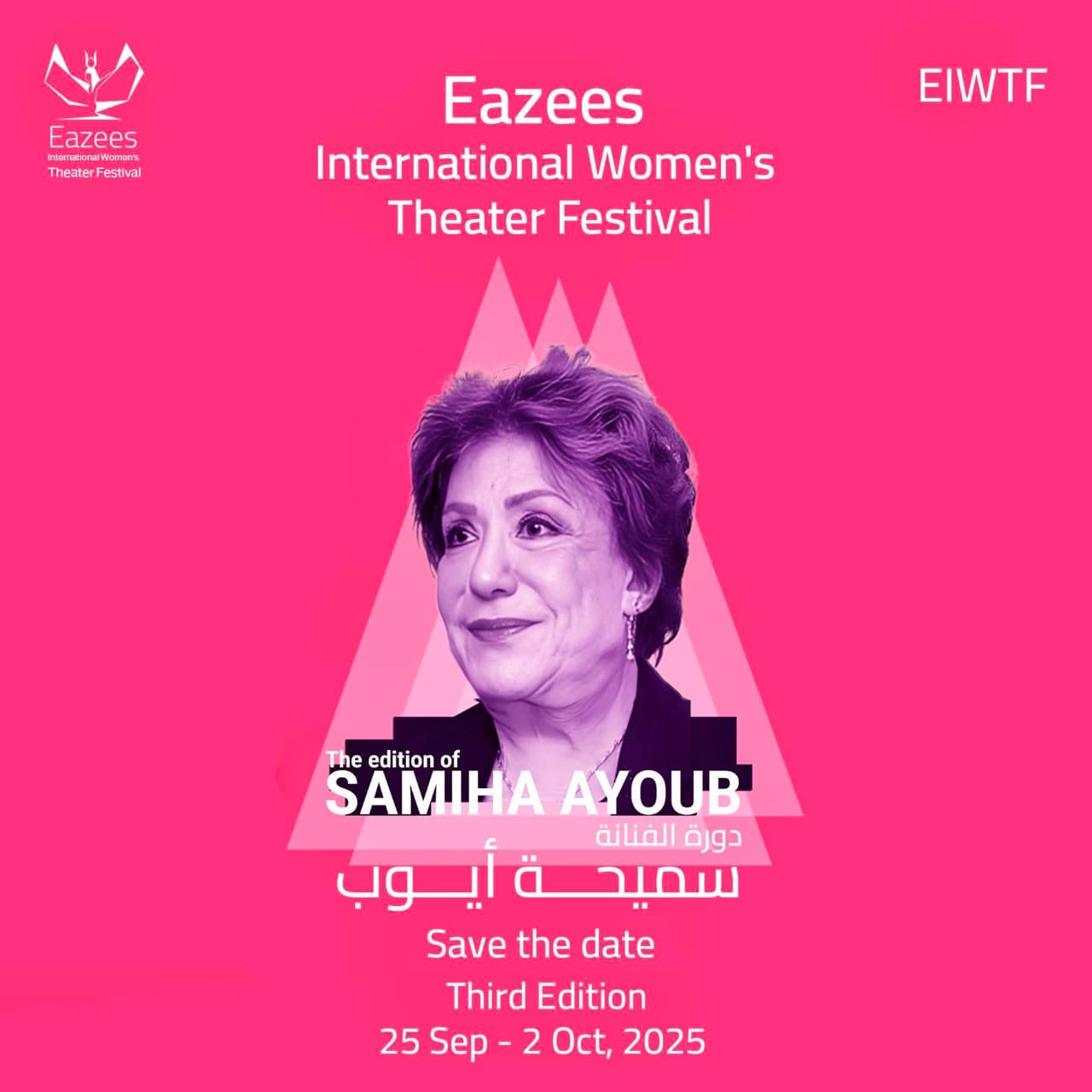 وكان قد قررت إدارة مهرجان إيزيس الدولي لمسرح المرأة إطلاق اسم سيدة المسرح العربي سميحة أيوب على الدورة الثالثة للمهرجان، وأكدت المخرجة والممثلة عبير لطفى أن إطلاق اسم سيدة المسرح العربي الفنانة الكبيرة سميحة أيوب على الدورة الثالثة يضيف لقيمة المهرجان ويدعم دوره فى الاحتفاء بصانعات المسرح المصري، حيث كانت أيوب نموذجا يحتذى به و أثرت فى الحركة الفنية والثقافية فى مصر والوطن العربي وتركت بصمة واضحة سواء كممثلة أو مخرجة، وكانت أول مديرة للمسرح القومي وهى أيضا اول سيدة قامت بإخراج عرضا مسرحيا على خشبة المسرح القومي، وكان تحديا كبير فى زمن تألق فيه عدد من عمالقة المسرح المصري.