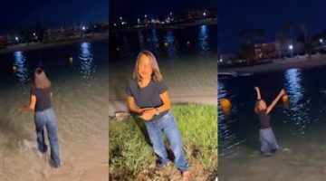 • للتخلص من الطاقة السلبية.. بسمة وهبة تنزل البحر بملابسها أثناء خسوف القمر