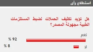 • تأييد شعبي ساحق بنسبة 92% لتكثيف الحملات الرقابية لضبط المستلزمات الطبية مجهولة المصدر