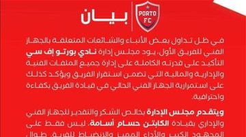 • في بيان رسمي.. بورتو إف سي يؤكد إستمرار حسام أسامة وينفي مفاوضاته مع شيكابالا