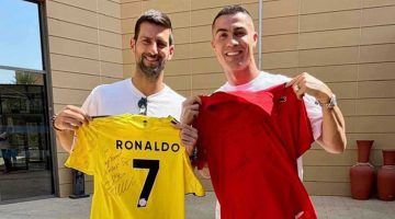 قابلها بالمثل.. هدية كريستيانو رونالدو لديوكوفيتش (صور)